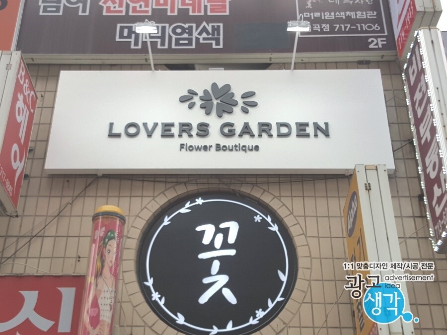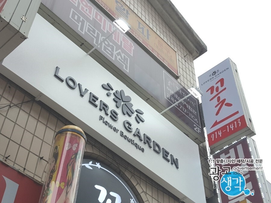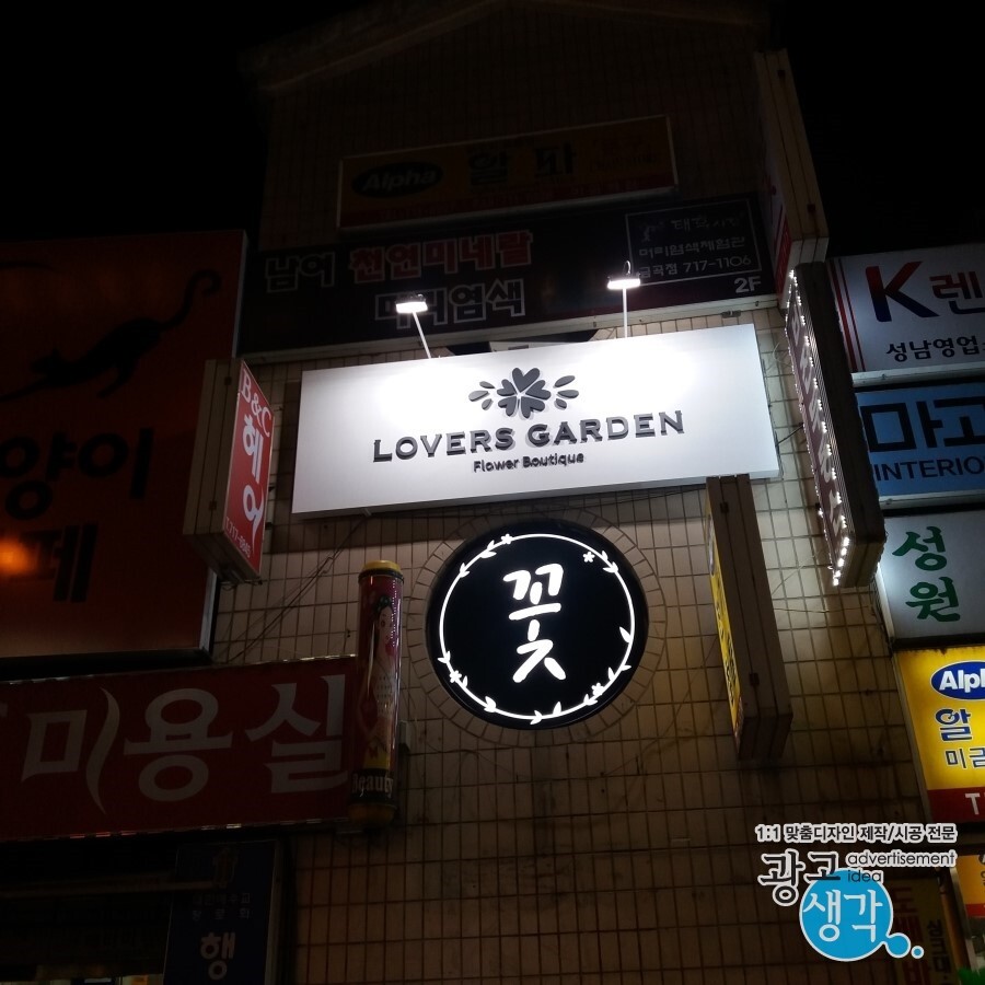 갈바간판 밑에 알미늄잔넬로 꽃이라고 건물에 라운드로 들어간 부분에 설치해 드렸습니다. 안전하게 라운드 안으로 밀어넣었습니다.
